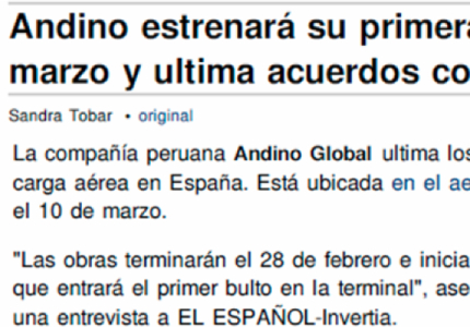 Andino Global will have its Barajas airport terminal operational in March