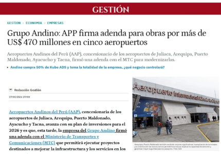 Andino Group: APP signs addendum for works worth more than US$470 million at five airports