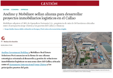 Andino y Mobiliare sellan alianza para desarrollar proyectos inmobiliarios logísticos en el Callao