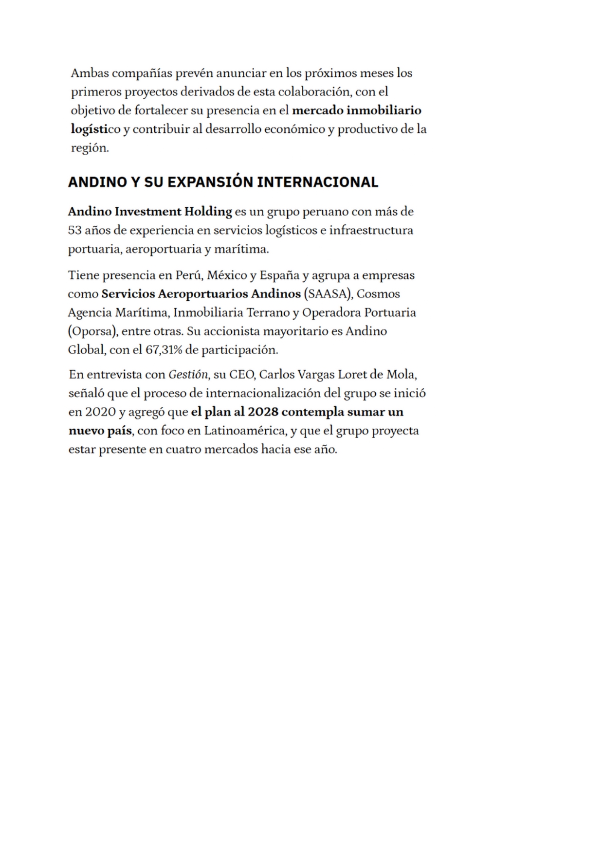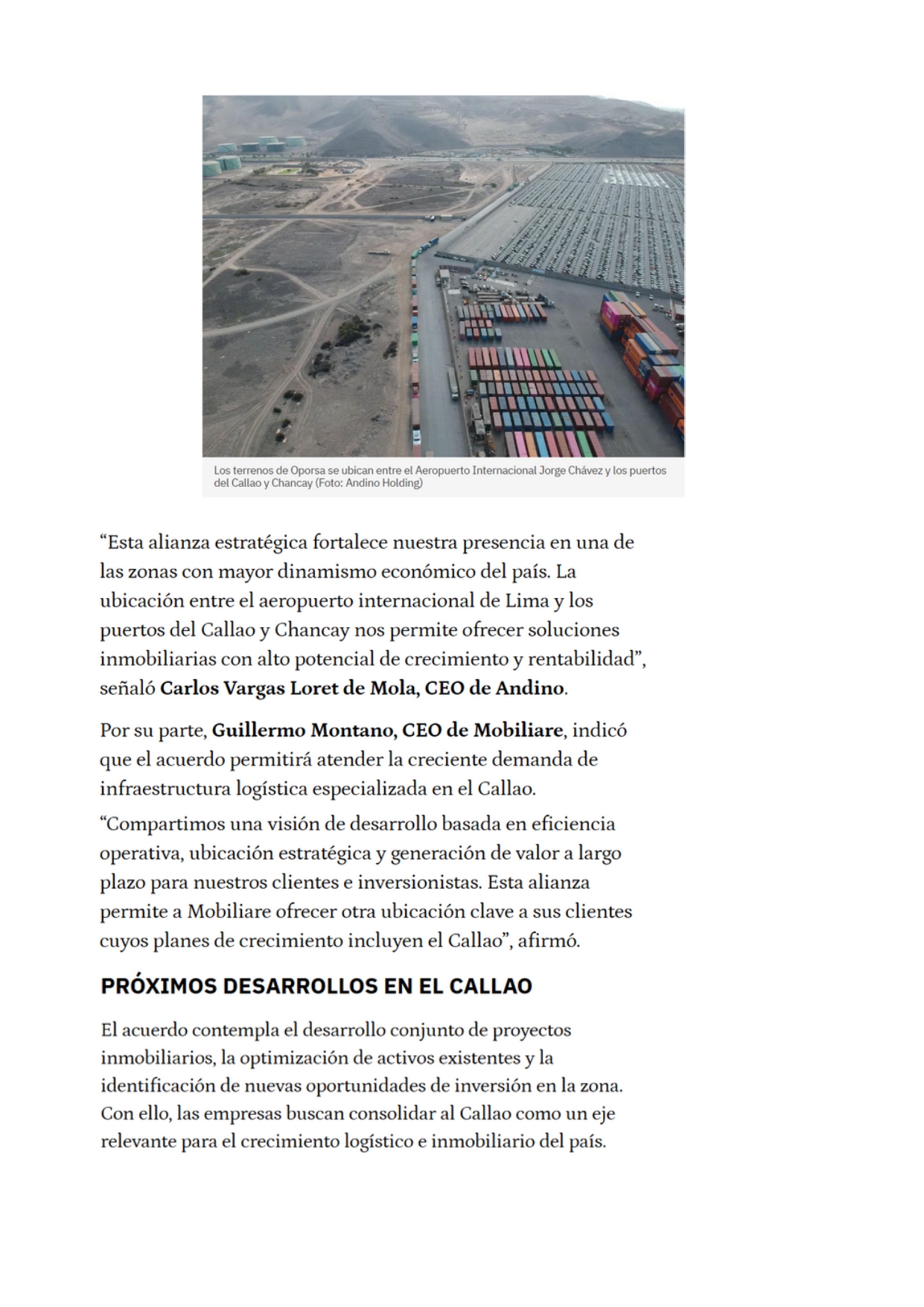 Andino y Mobiliare sellan alianza para desarrollar proyectos inmobiliarios logísticos en el Callao