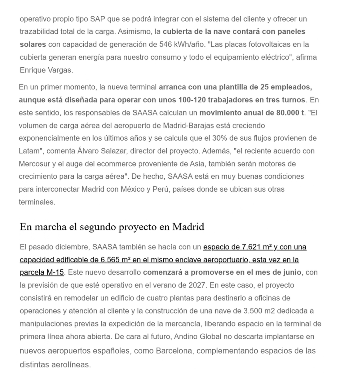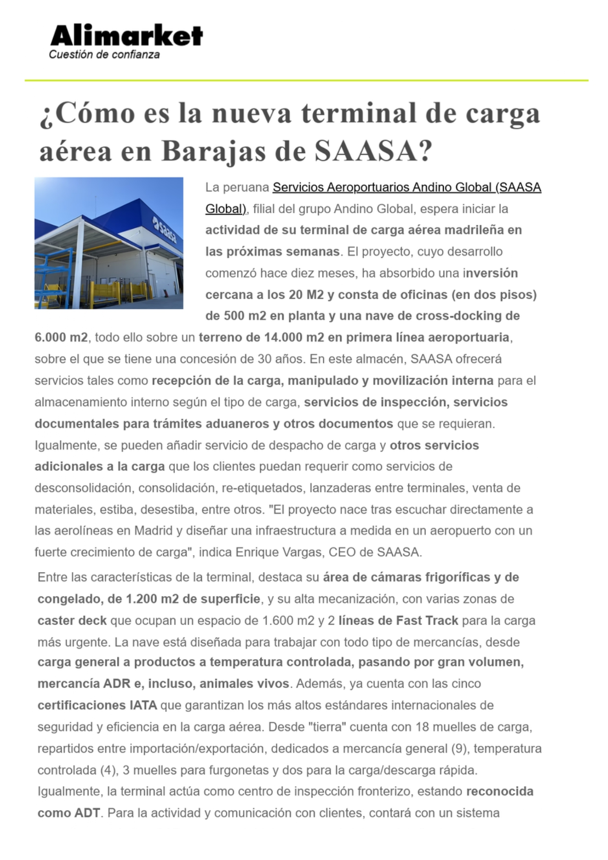 ¿Cómo es la nueva terminal de carga aérea en Barajas de SAASA?
