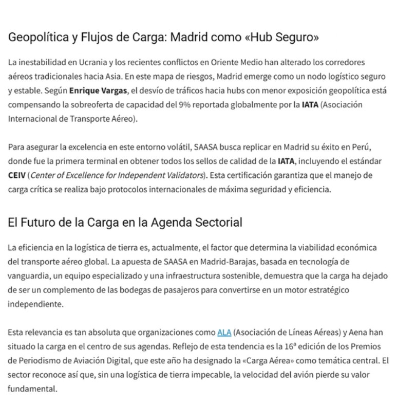 SAASA y la Transformación de la Logística de Carga en Madrid-Barajas: Innovación, Frío y Sostenibilidad.
