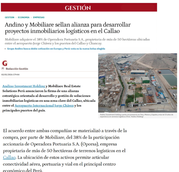 Andino y Mobiliare sellan alianza para desarrollar proyectos inmobiliarios logísticos en el Callao.